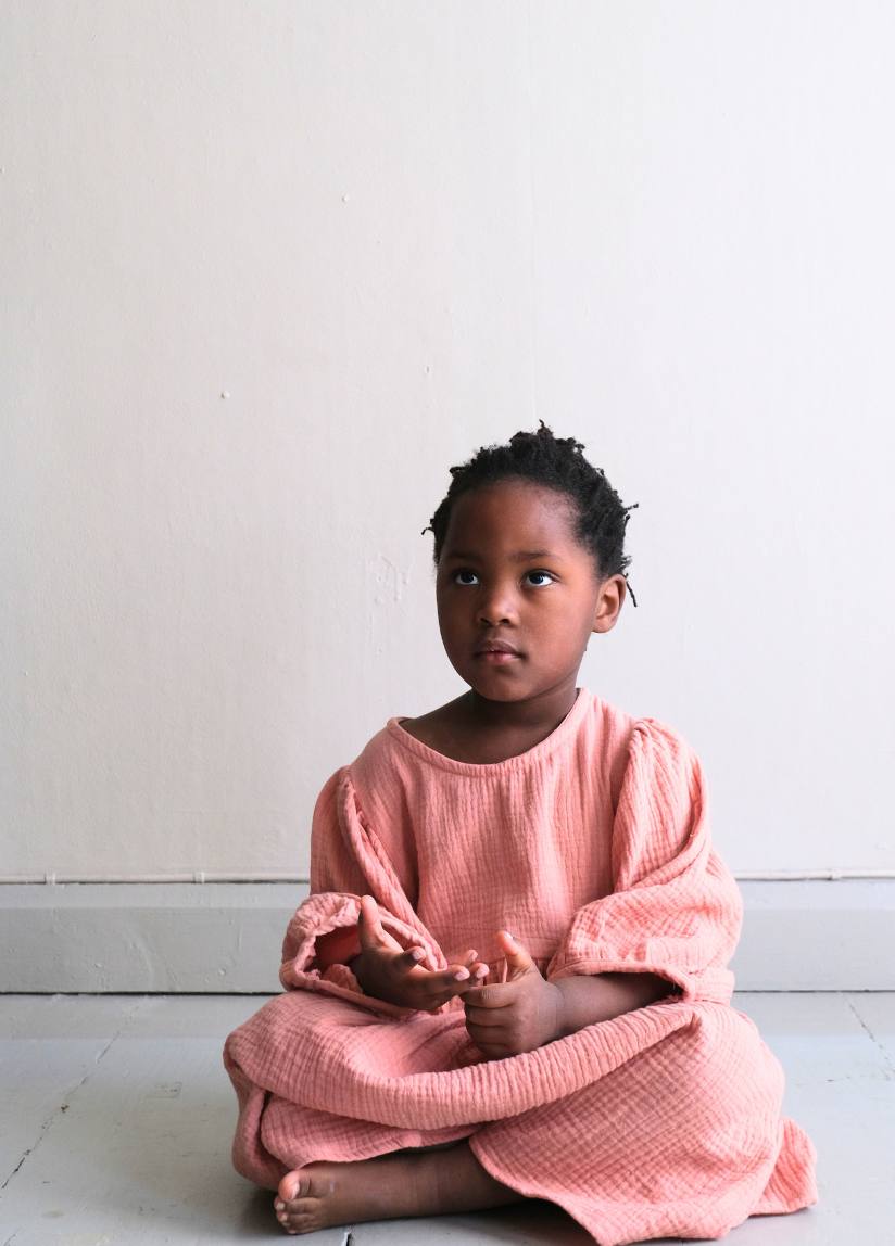 The puffier the better right? Feel at home in this double layer perfectly soft pink colored muslin dress<3