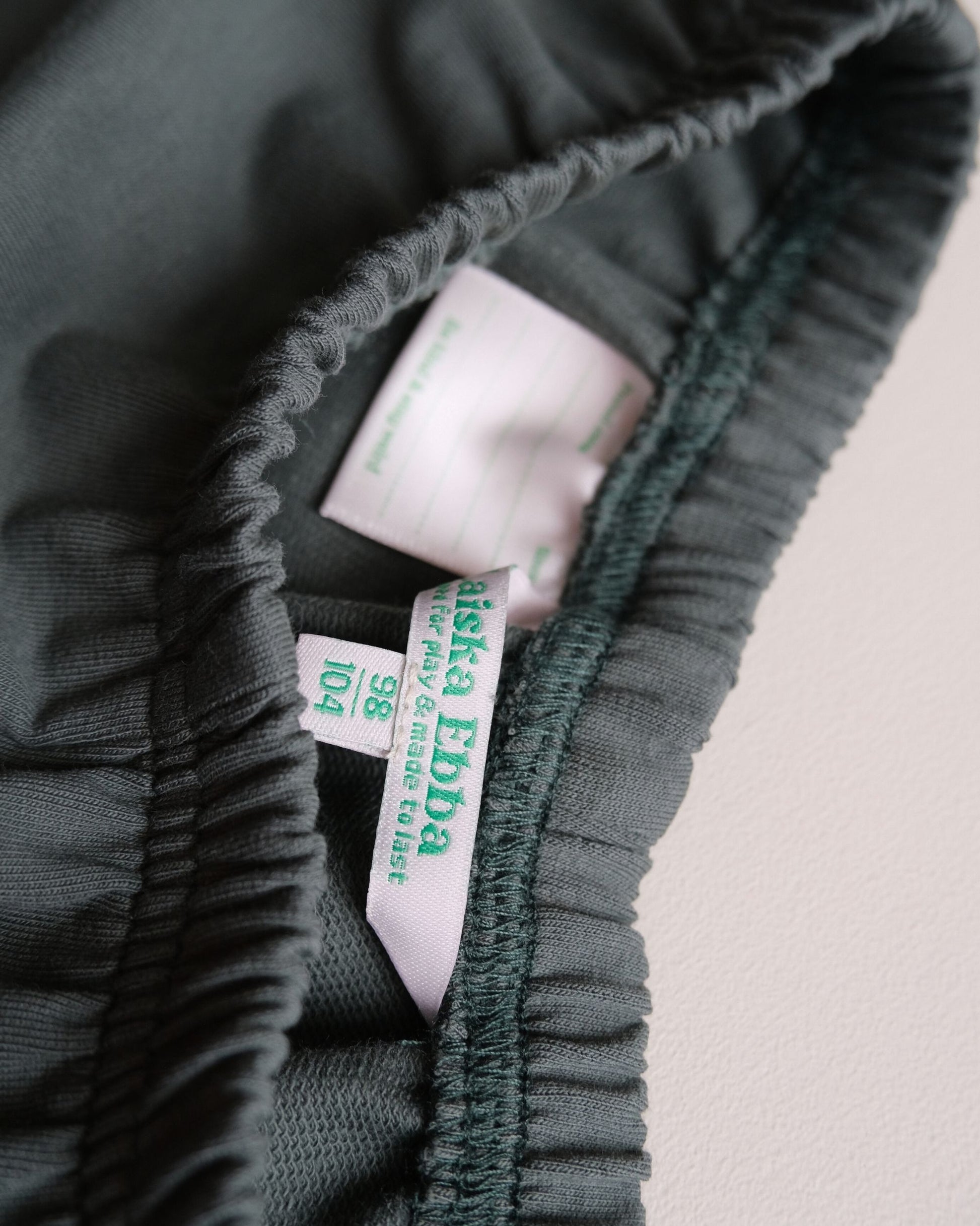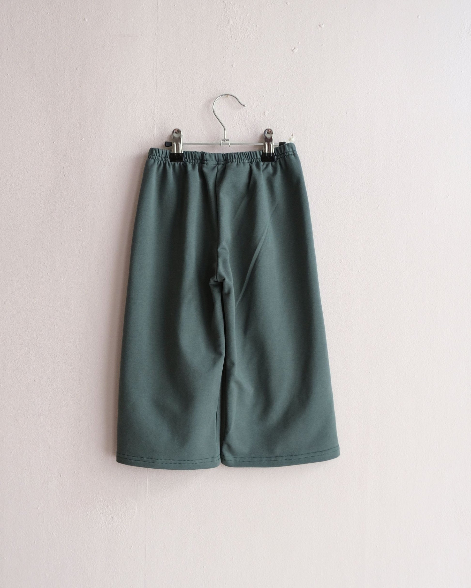 - Fit: wide, relaxed legs with a soft elastic in waist.